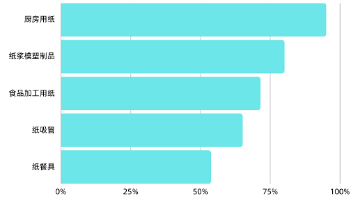 结果表明,纸制品中氯丙醇的检出频次普遍较高(65%)。检出率较高的产品有厨房用纸(95%)、纸浆模塑制品(80%)、食品加工用纸(71.4%),纸吸管(65%)、纸餐具(53.7%)。